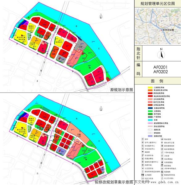 “三馆合一”项目位于AF0202规划管理单元内,为落实“三馆合一”项目13.8万平方米的总建设量,该规划管理单元内总建筑量随之增加,具体计容建筑面积待建筑方案确定后予以明确。同时将三馆选址范围的西侧部分从现行控规商业商务设施混合用地、广场用地、公园绿地、调整为文化设施用地,沿江预留慢行公共空间;将原控规AF020207文物古迹用地调整至鹅潭路对面绿地中。将原控规AF020216广场兼容文化、商业设施用地的建设量从3784平方米调整至1.2万平方米,并划定可建设范围。