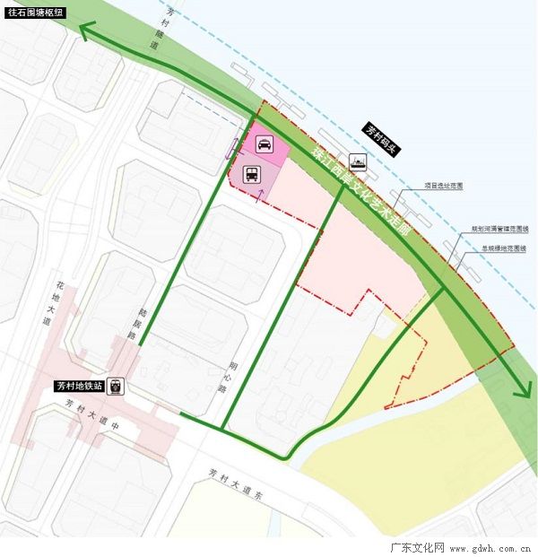 三大标志性文化设施的建设将带来更多的人流量,交通问题如何解决备受关注。本次规划调整中提出,将现状芳村码头用地纳入文化设施用地中,调整后的文化设施用地还将配建社会停车场、公共厕所、有轨电车终点站、公交首末站。此外,同时进行道路调整,结合三馆建设需求,优化部分城市支路道路线位,优化细化文化设施用地周边的地块划分与交通组织,增强交通疏导能力;鹅潭路优化为地面平交贯通,具体线位需结合建筑设计方案予以落实。